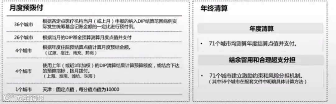病种分值计算:59个城市选用“全部病例平均费用”,9个城市选用“基准病种的平均费用”,3个城市选用“固定数值”。