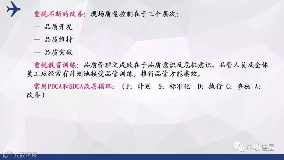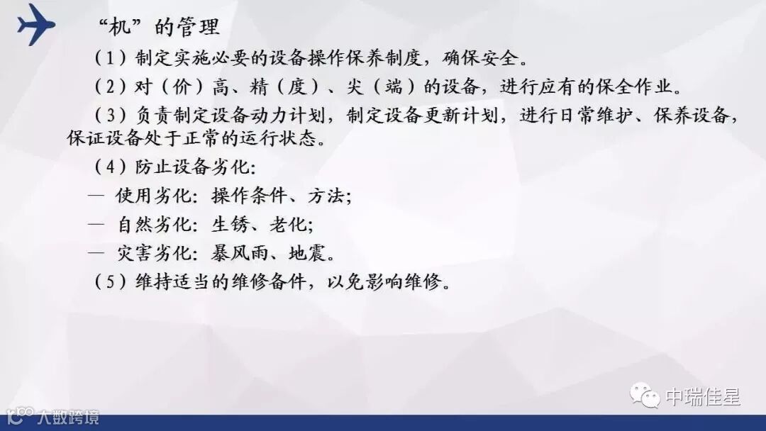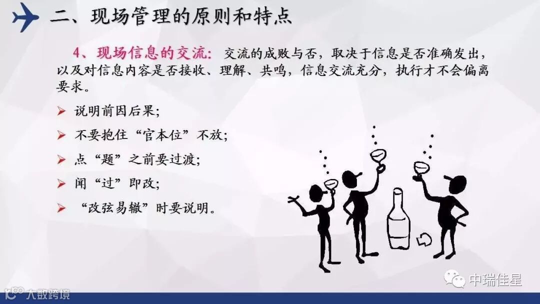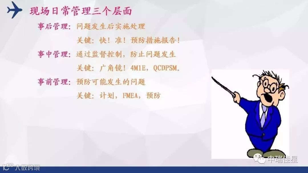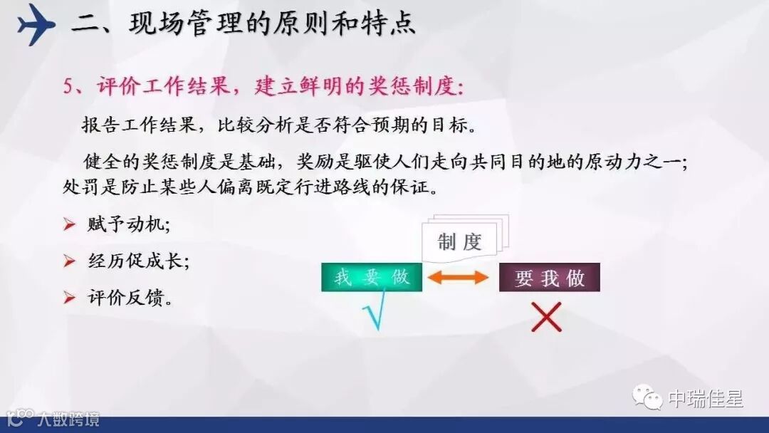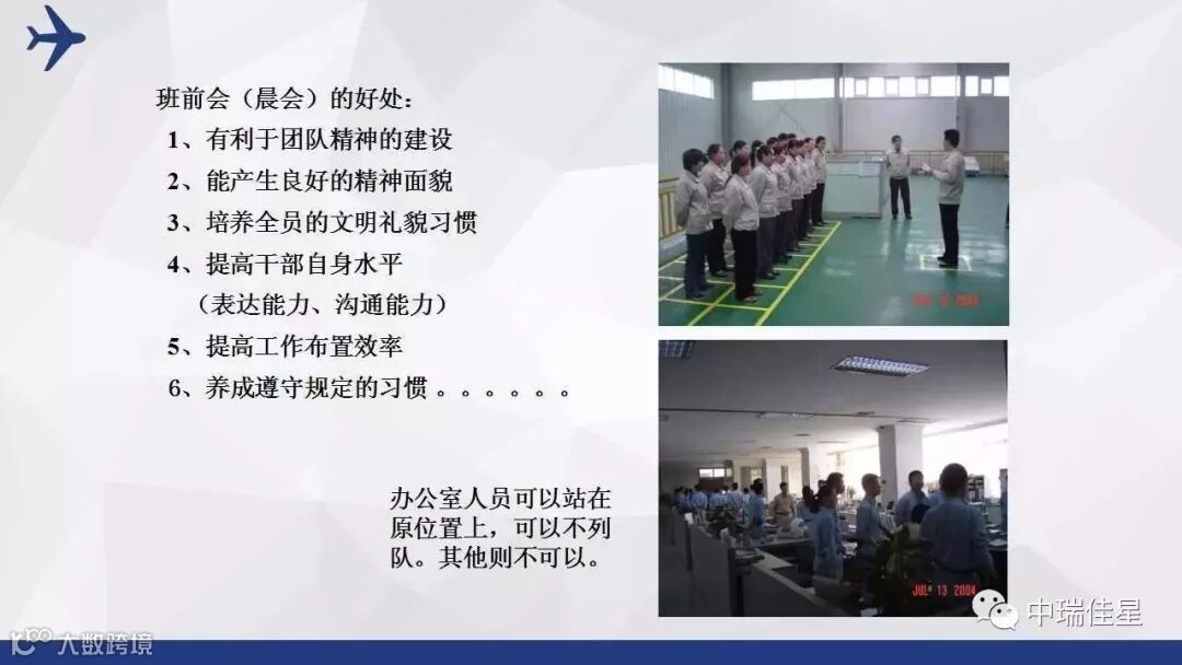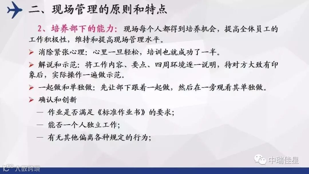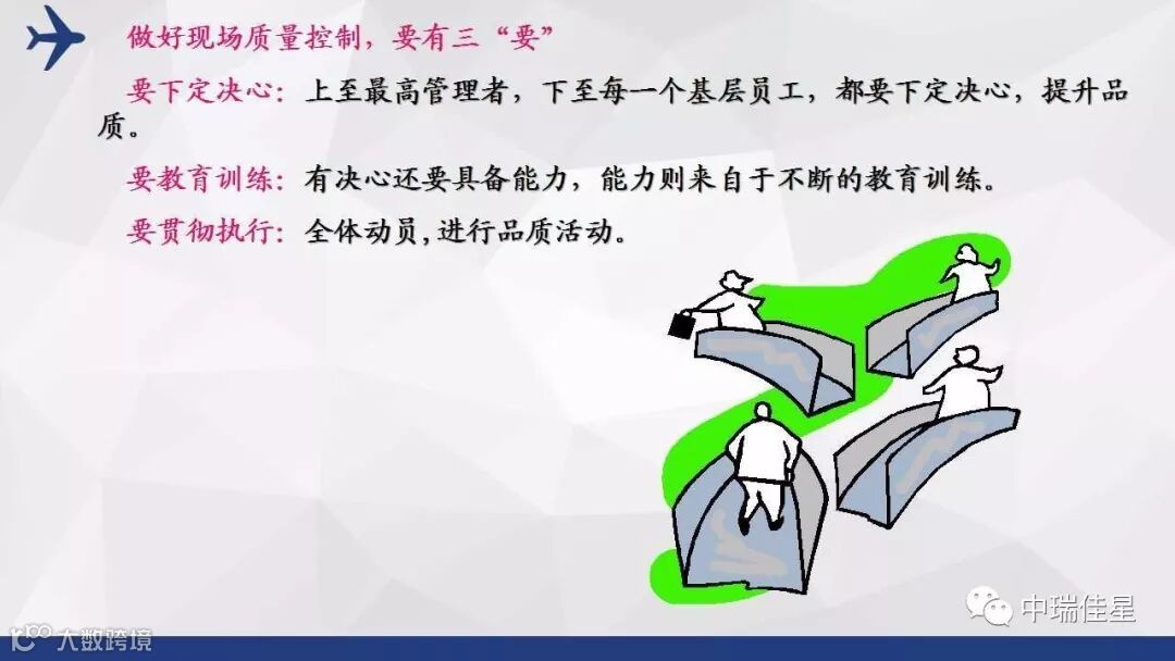 中瑞佳星导读:现场管理就是指用科学的管理制度、标准和方法对生产现场各生产要素,包括人(工人和管理人员)、机(设备、工具、工位器具、工装夹具)、料(原材料、辅料)、法(加工、检测方法)、环(环境)、信(信息)等进行合理有效的计划、组织、协调、控制和检测,使其处于良好的结合状态,达到优质、高效、低耗、均衡、安全、文明生产的目的。
