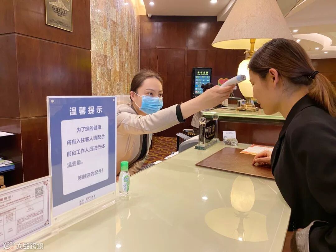 前厅方面,办理入住时向住客提供口罩等消毒用品,并对每一位住客进行体温实测登记,每日安排专人对住客进行体温复测。