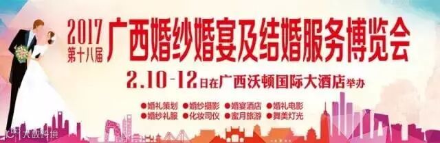 广西婚纱、婚宴及结婚服务博览会(简称:广西婚博会)鸡年第一展即将开幕,本次展会云集南宁本土50家婚嫁知名品牌参展,为每对准新人提供优质实用的婚礼采购平台,集最新、最 齐全的婚嫁资讯、产品及专业服务。
