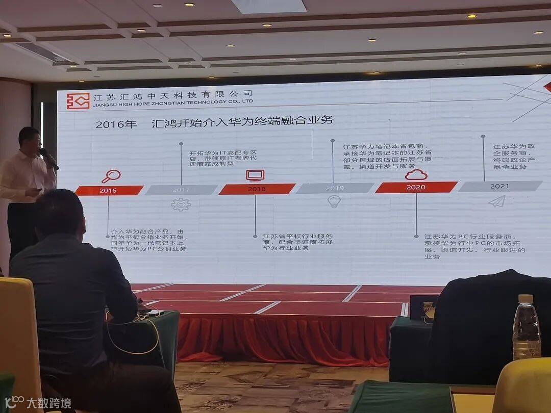 会议首先介绍了与会的各位嘉宾,华为江苏政企分销业务总经理姜润青先生、汇鸿中天科技董事章伟先生等悉数到场,获得了在场与会人员的热烈欢迎。