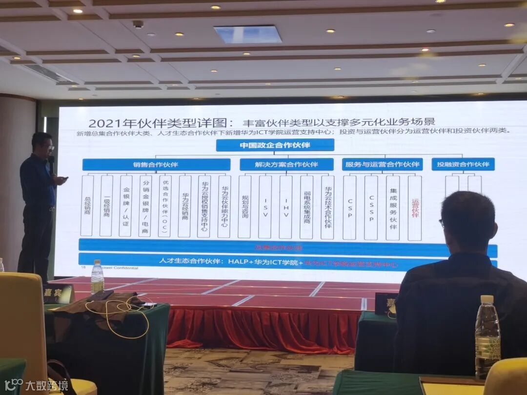 在刘文君女士精彩的演讲之后,在大家的期待之下,华为江苏政企分销业务总经理姜润青先生为各渠道来宾详细讲解了华为针对渠道伙伴的各项政策以及产业整合能力。华为会牵引公司资源持续加大江苏投入,建立常态化合作机制。