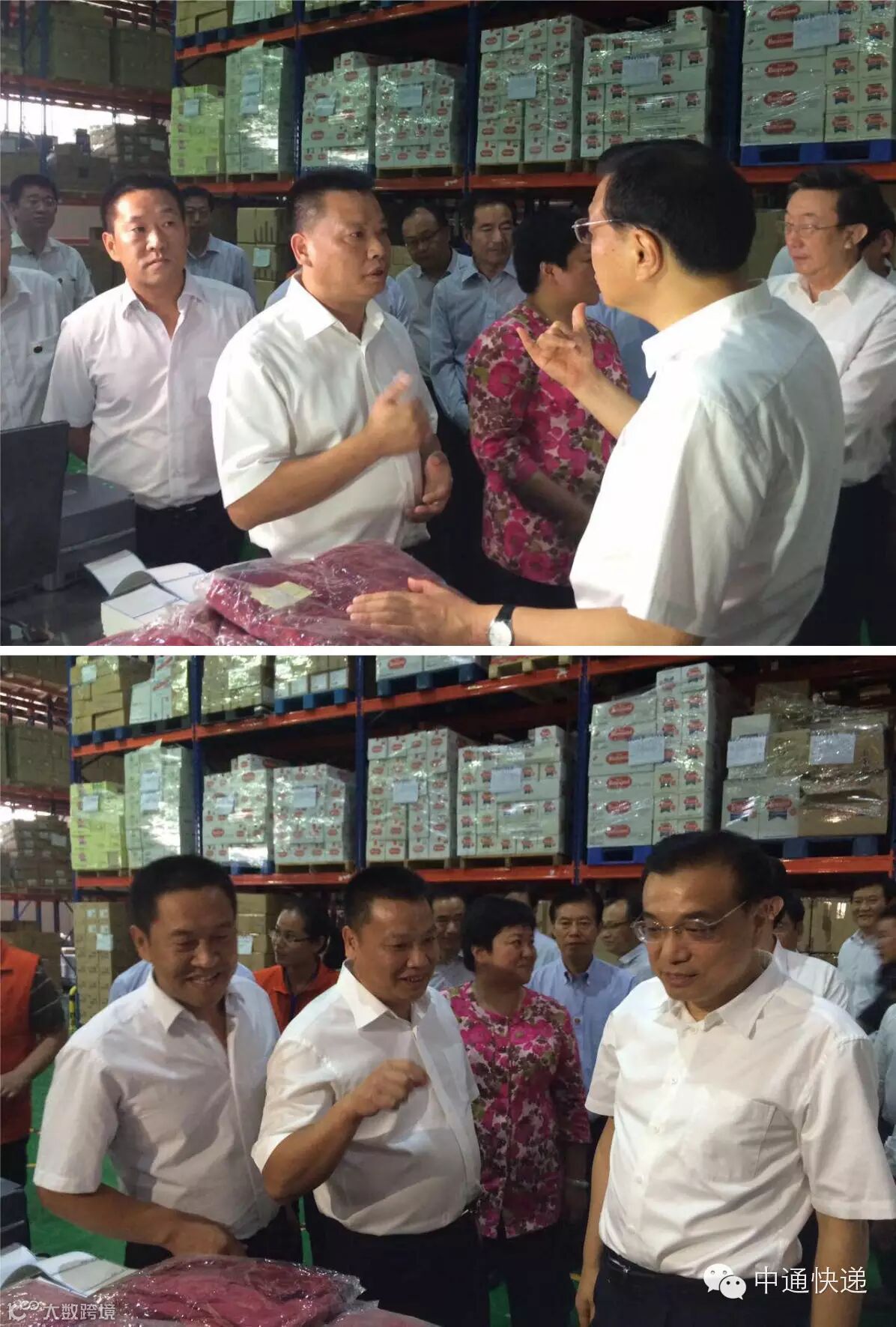 中通快递董事长赖梅松(中)向国务院总理李克强(右一)汇报中通发展情况,赖梅松说,十三年前我和我的伙伴们从浙江桐庐农村出来创办了中通快递,我们是您倡导的“大众创业、万众创新”的忠实实践者,您对快递业的每次点赞都给我们带来巨大鼓舞和信心。