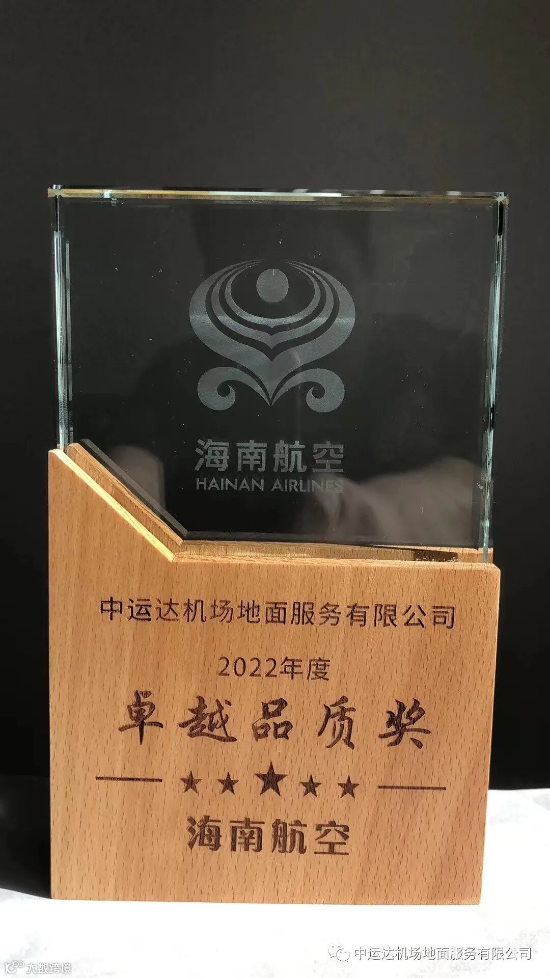 )航空地面服务有限公司荣获海南航空公司“2022年度卓越品质”奖。此奖项见证了海南航空与中运达多年来良好的合作伙伴关系,既是对中运达公司的高度认可,也是对全体班组团队专业、敬业精神的鼓励。