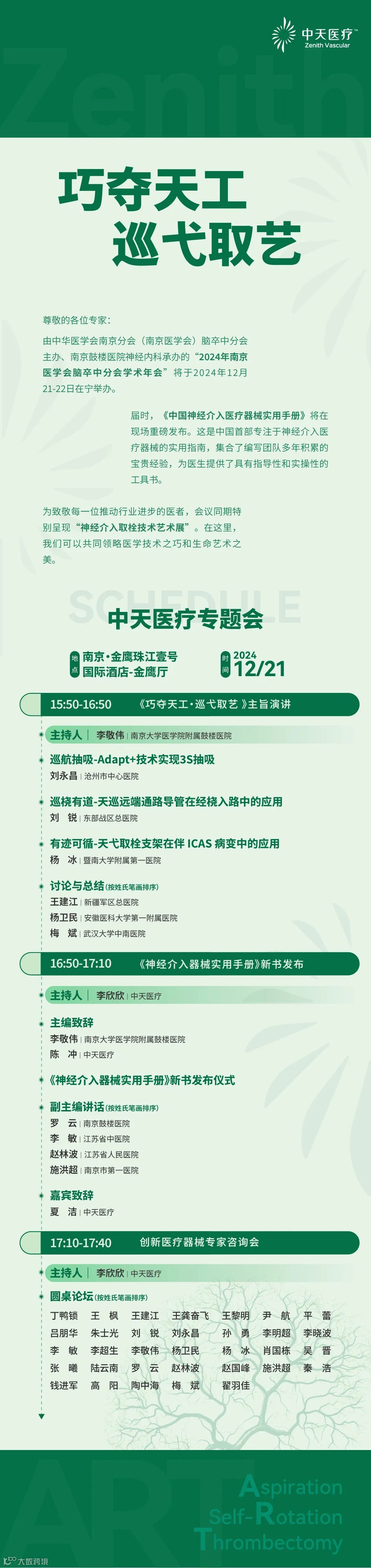 会议预告 | 巧夺天工 巡弋取艺——中天邀您共赴取栓学术盛宴 中天医疗Zenith