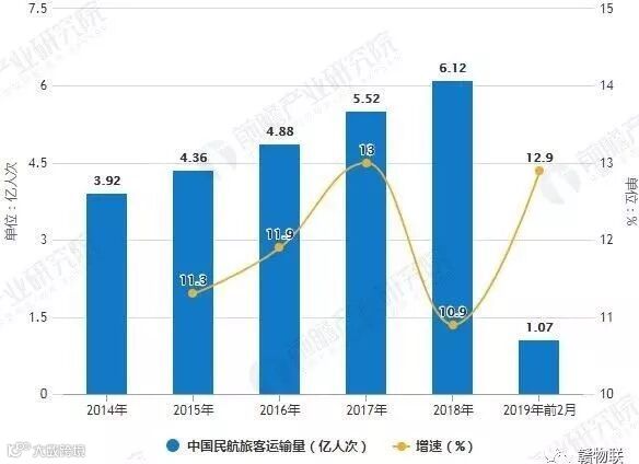 2014-2019年前2月中国民航旅客运输量统计及增长情况