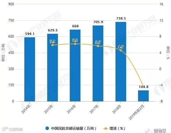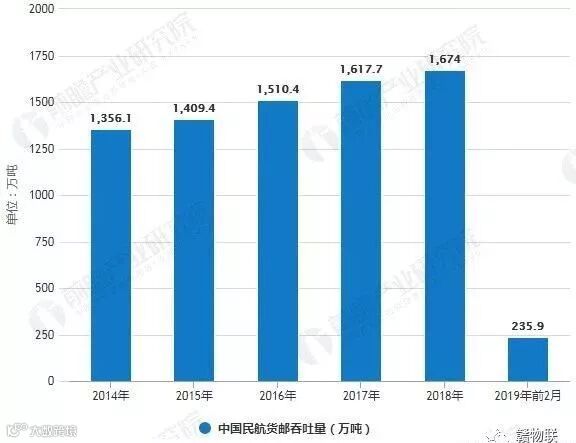2014-2019年前2月中国民航货邮运输量统计及增长情况