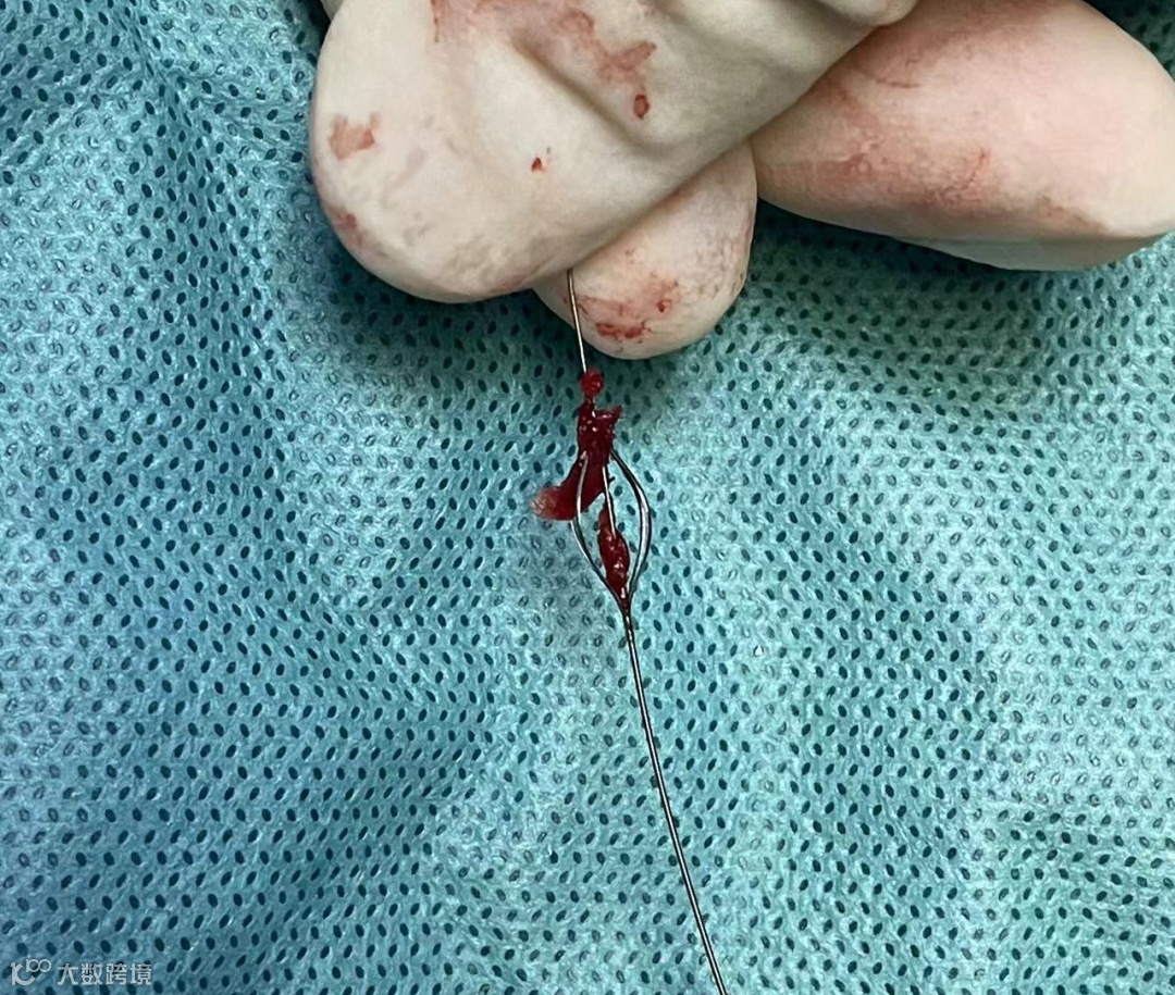 抽吸导管结合碎栓装置,可以将血栓破碎后吸出,吸栓效率高,对陈旧性血栓也有效果。本次手术冲管1次,术中失血约80ml。