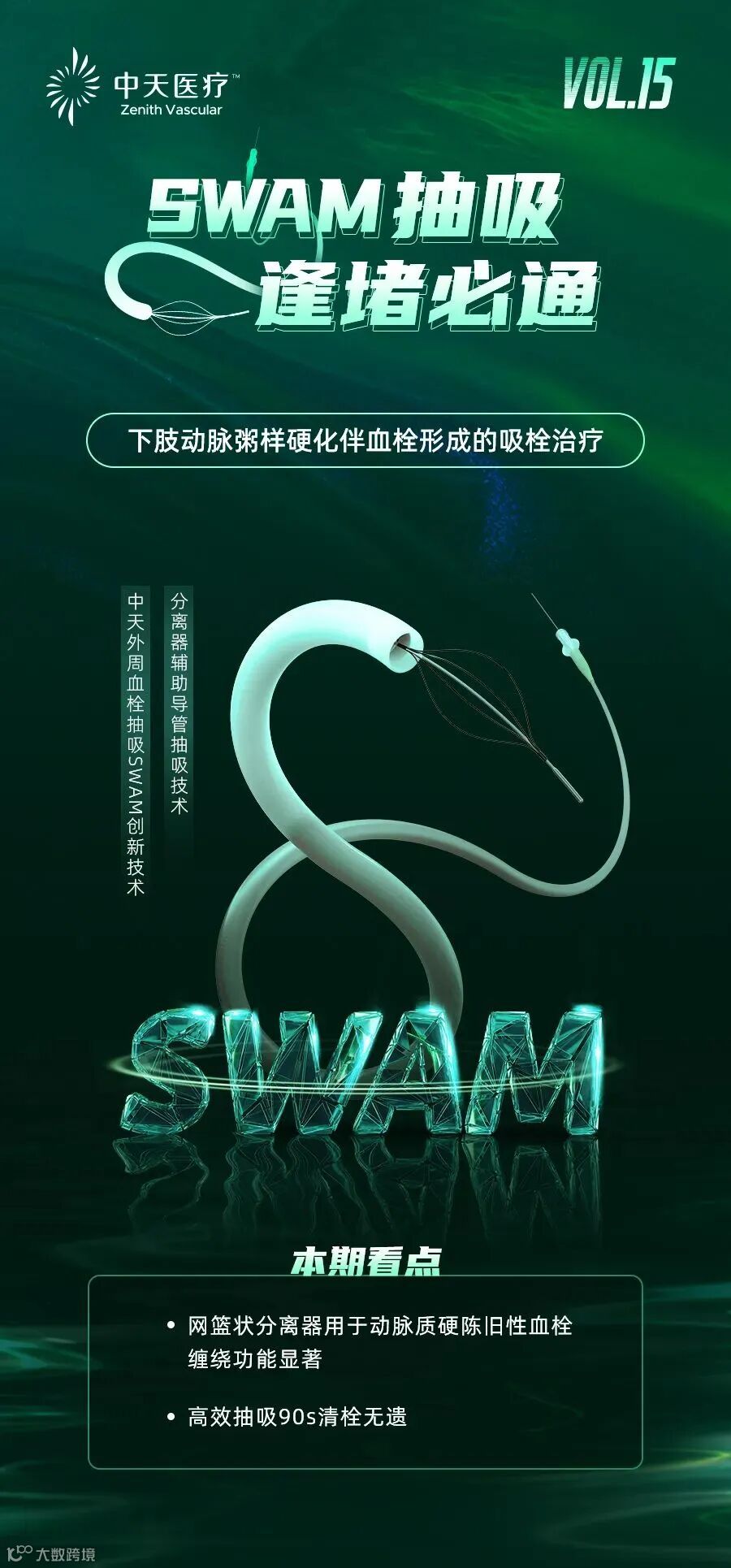 临床需求是实现器械创新的基础,聚焦于全球医学界关注的外周血管疾病如血栓清除工作始终是热点,而在吸栓诊疗中,如何确保有效、安全、避免堵管,一直是临床实践中未突破的瓶颈。中天医疗始终关注临床需求,以其创新的SWAM分离器辅助导管抽吸技术,为这一难题带来了革命性的解决方案。为了更广泛地展示SWAM分离器辅助导管抽吸技术在各类动静脉血栓疾病治疗中的应用经验与技巧,中天医疗携手临床专家及血管资讯,精心策划了【SWAM抽吸 逢堵必通】技术专栏。这一专栏致力于向医疗界传递最新的技术进展和实践案例,为临床专家提供一个深入交流、共同探索的平台,以期在外周血管领域取得更为显著的突破和进步。