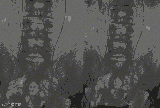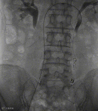 使用微导管到达卵巢静脉病变处,置入2枚18系统8mm*20cm中天完全可控外周弹簧圈,再次手推造影剂未见静脉返流。