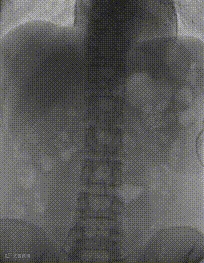 行左侧肾静脉造影显示:左肾静脉通畅,可见迂曲粗大的左侧卵巢静脉;