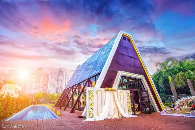 13.14米挑高尖顶独立型的玻璃礼堂,美好寓意一生一世。