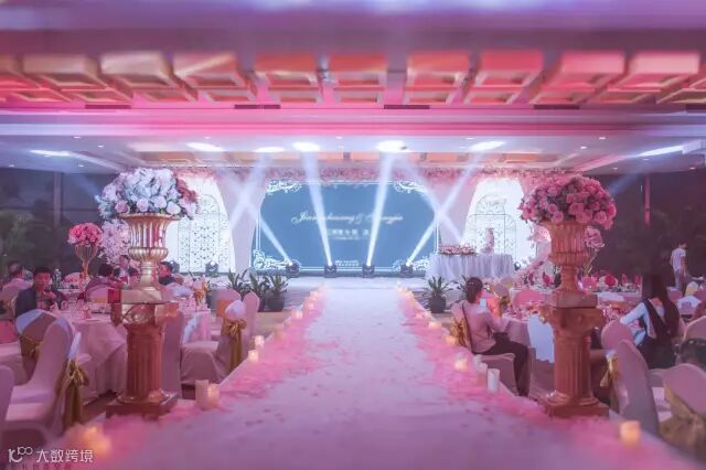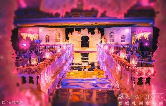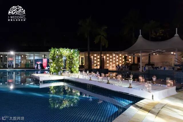 夜幕下的池水,将舞台环绕其中,聚光灯下共庆婚礼前夕!