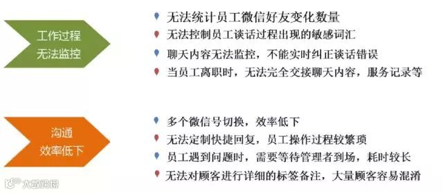 微信时代,越来越多的业务/服务沟通已直接在微信上完成,但在沟通效率及员工管理方面却存在如下问题: