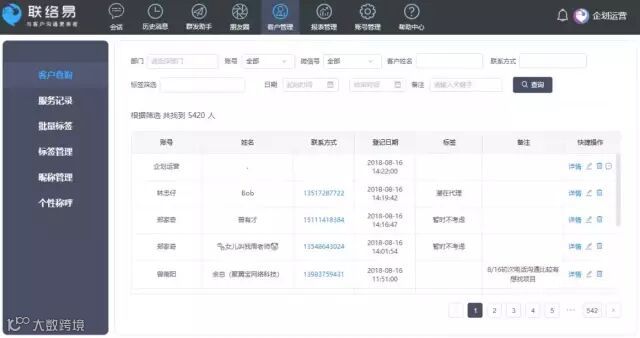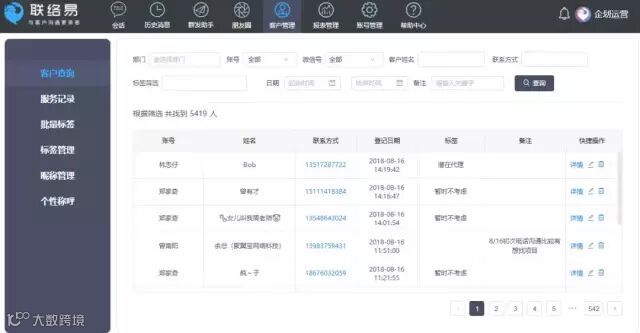 联络易系统具备CRM功能,可登记每个客户的详细资料,对他们批注各类标签,多维度的精准画像,方便日后做客情维护。