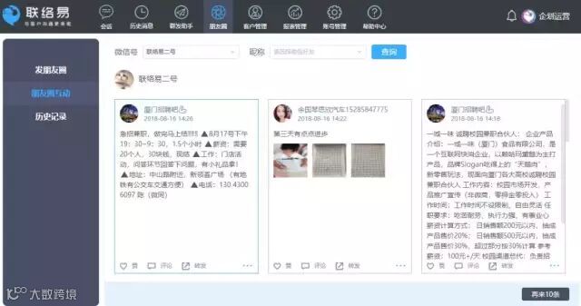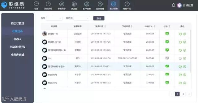 系统可实时查帐户的在线记录,以及新增好友及微信好友统计,等等。