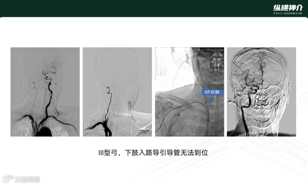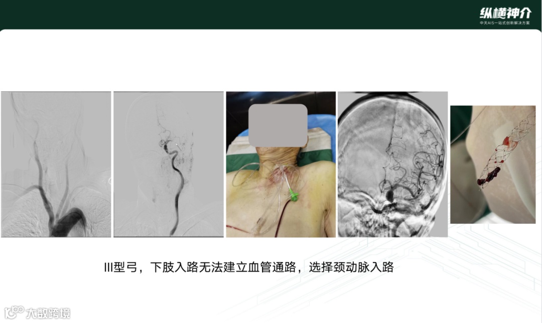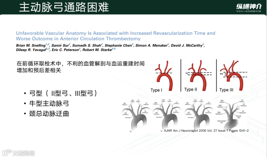 在急诊取栓过程中,不利的血管解剖与血运重建时间增加和预后差相关。常见的解剖变异有:II型弓和III型弓、牛型主动脉弓和颈总动脉迂曲,这给我们病变治疗带来了非常大的困难。
