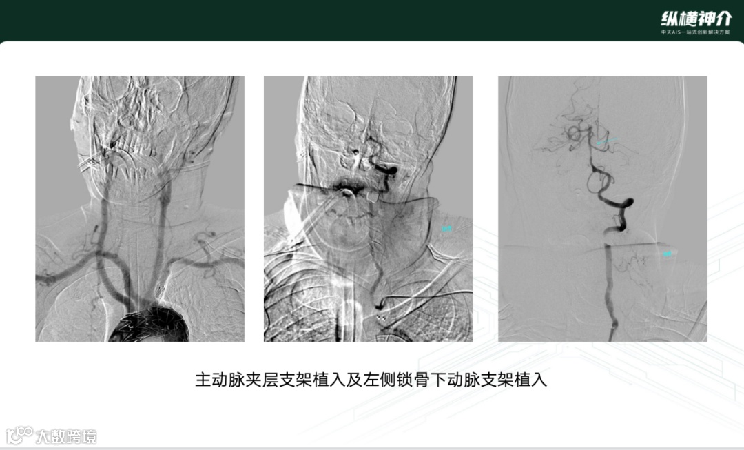 这是一例主动脉夹层支架植入及左侧锁骨下动脉支架植入后的患者,这次是颈动脉的闭塞,我们选择左侧入路,使用了6F长鞘为颅内病变治疗建立通路。