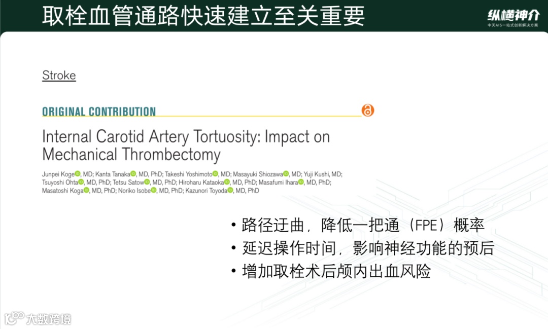 我们在急诊取栓中经常遇到通路建立困难,这不仅降低了一把通(FPE)概率、延迟操作时间并降低神经功能的预后,甚至还增加了术后颅内出血的风险。那血管通路的快速建立是我们手术成功的第一步。那今天的主题主要是围绕急诊取栓入路通路的建立。