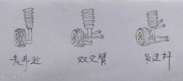 麦弗逊悬挂,其实就是最简单的方式,又便宜;而大多数家轿、SUV都是这种双叉臂悬挂,一看就可靠、稳定的多了;至于高档SUV和主流的越野车大都使用多连杆悬挂,看上去更加高大上,更有安全感了。不过,貌似结构复杂了,多连杆的角度要特别科学才行啊。