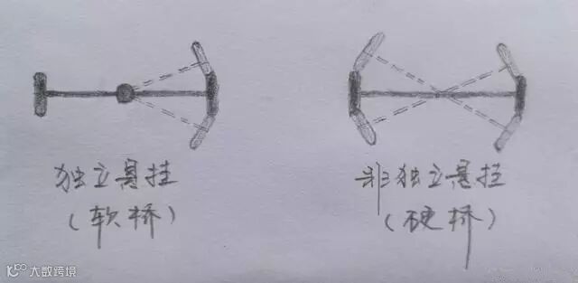 其实特简单,用软桥就是独立悬挂,用硬桥,就是非独立悬挂。