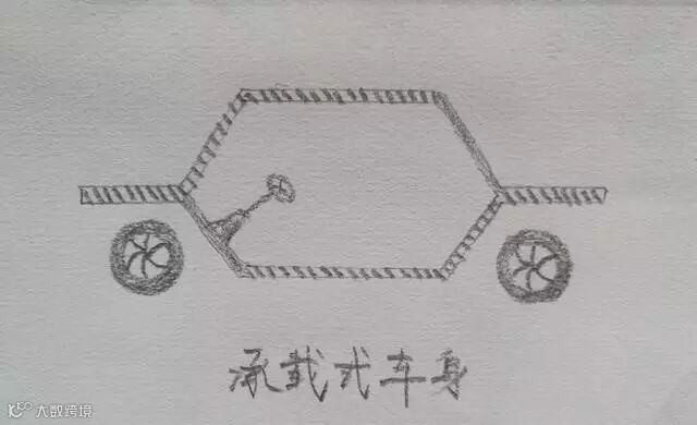所谓承载式车身,就是车架和车壳是一体的。就像个箱体似的。优点是空间利用率高,车内空间大啊。所有的家用轿车都是承载式车身,绝大部分的SUV都是承载式车身。
