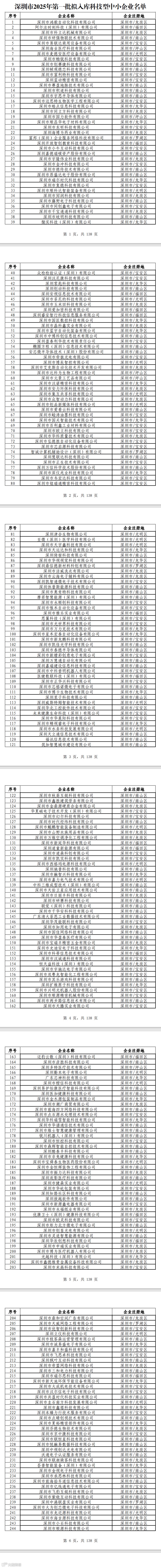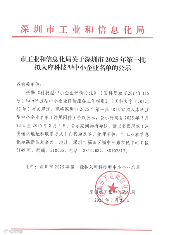 深圳市2025年第1批拟入库科技型中小企业名单公示(5813家)