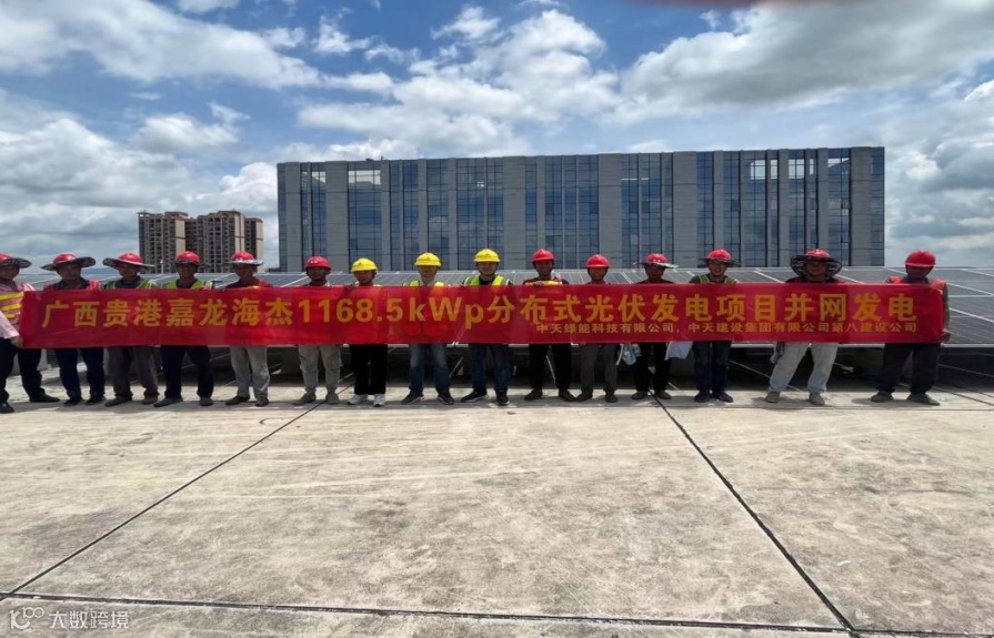 中天绿能科技有限公司广西贵港嘉龙海杰1168.5kWp分布式光伏发电项目并网发电
