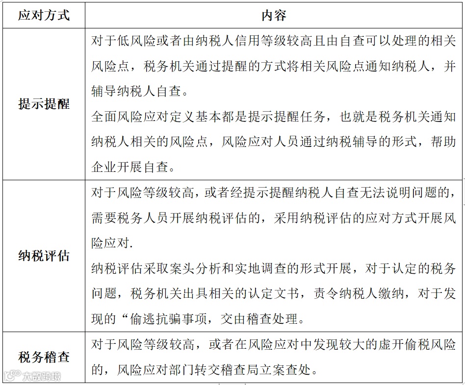 在企业的日常经营中,针对不同程度的税务风险,我们通常会有不同的应对方式。安安帮大家大致整理了一下: