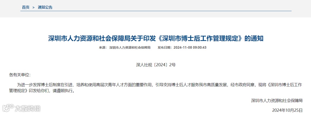 对于全球排名前100名的国(境)外高校从事博士后研究不少于2年、博士后研究结束3年内且年龄不超过40周岁的境外博士后,来深全职工作,且与本市企事业单位签订3年以上劳动(聘用)合同的,给予每人36万元出站来深生活补助。