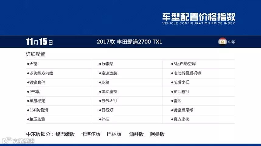 TXL什么意思?TXL也属于普通配置,不过相比TX来说更强调舒适性,中东进口的普拉多2700TXL有两气囊款和九气囊款,是市面上最常见的车型。目前主要有三个版本,平行进口车阿曼版、卡塔尔版和黎巴嫩版本。TXL基本都为后挂备胎并且有天窗。