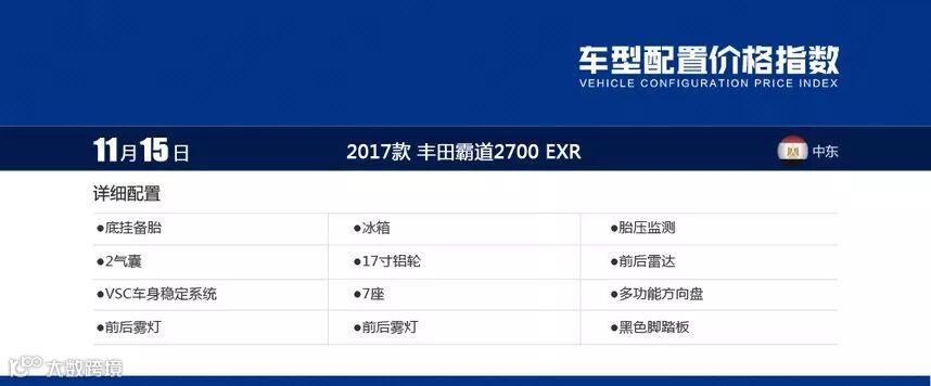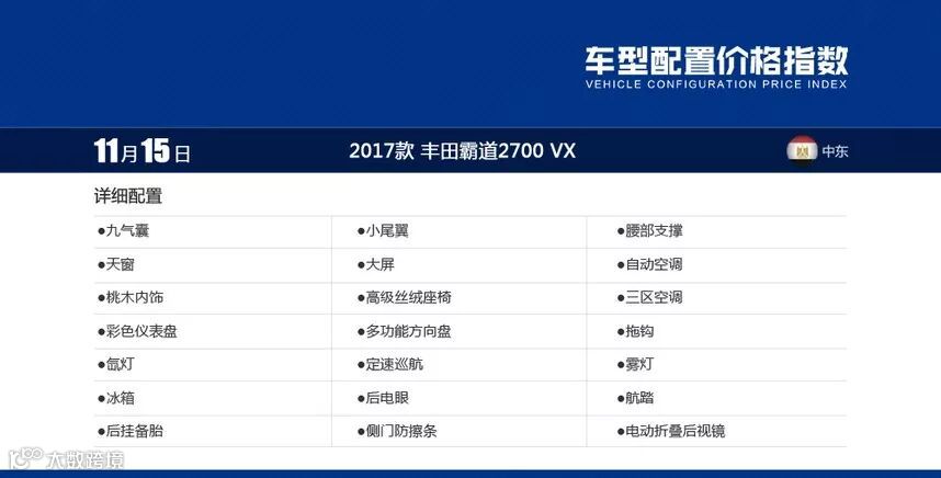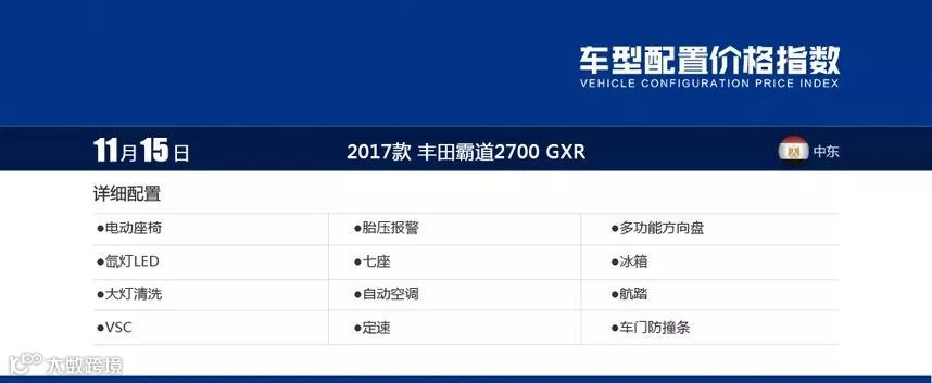 VX什么意思?VX相当于高配版本更讲究越野性能,9气囊外挂备胎是它的基本配置也是2017款中东普拉多2700的最大特点。桃木内饰,液晶仪表带行车电脑也是它与其他款的气质区别。