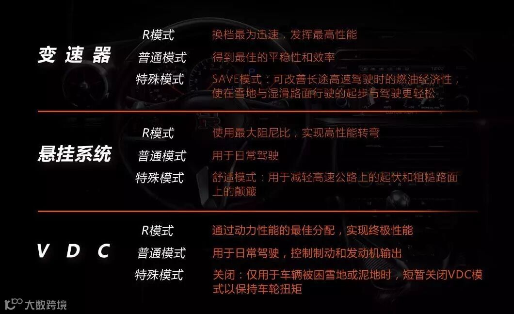 VDC车辆动态控制系统,设置为R模式过弯时,若系统探测到转向力不足或转向过度,将自动调整相应车轮动力分配情况。