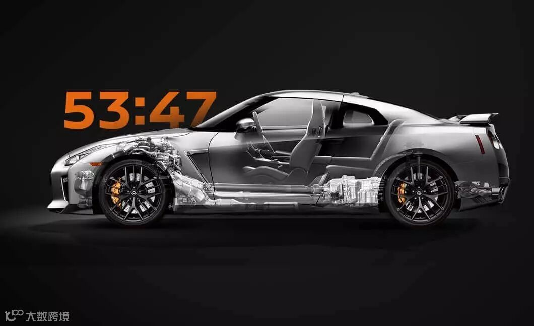 GTR采用发动机前置布局,将离合、变速与分动器安装在底盘后部,实现53:47的静态重量分布和加速时50:50的动态重量分布,实现最佳的动态平衡和操控性,入弯干净利落,动力响应及时快速,同时减少发动机和变速器之间产生的热量,冷却效果明显提升。