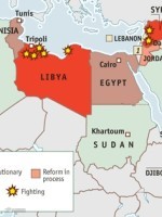 本图展示了2011年的利比亚战争对非洲的政局影响。