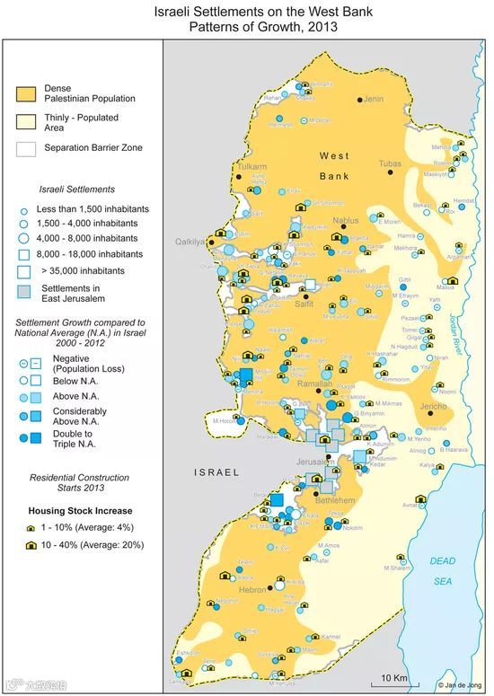 自1967年以来,以色列人在约旦河西岸修建了大量定居点(包含约50万定居者以及130个社区),这些定居点为巴以和平带来了极大障碍。