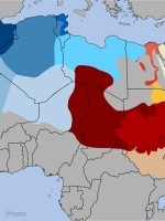 这张地图展示了世界上的众多阿拉伯语国家的语言差异。回溯到公元6和7世纪的阿拉伯帝国时期,从阿拉伯半岛、非洲和整个中东地区的语言几乎都统一为阿拉伯语。在约1300年之后,不同地区的阿拉伯语已转变为不同的方言,不同地区的人们无法理解对方的语言,有时这就为爆发矛盾和冲突埋下了隐患。