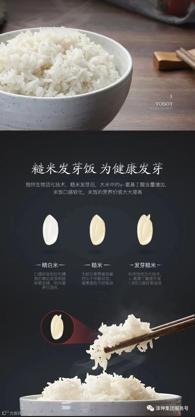 值得一提的是,很多人因为糙米口感差对它“敬而远之”,这是因为普通电饭煲做糙米饭容易夹生,口感较硬。但是据用户反映,大松金康煲做出的糙米发芽饭,吃起来可一点都不“糙”,那是因为它采用变功率IH加热技术,智能调节加热火力,实现米饭持续沸腾,让米饭受热更均匀,充分释放营养精华,米皮充分软化,糙米发芽饭香甜软糯Q弹。