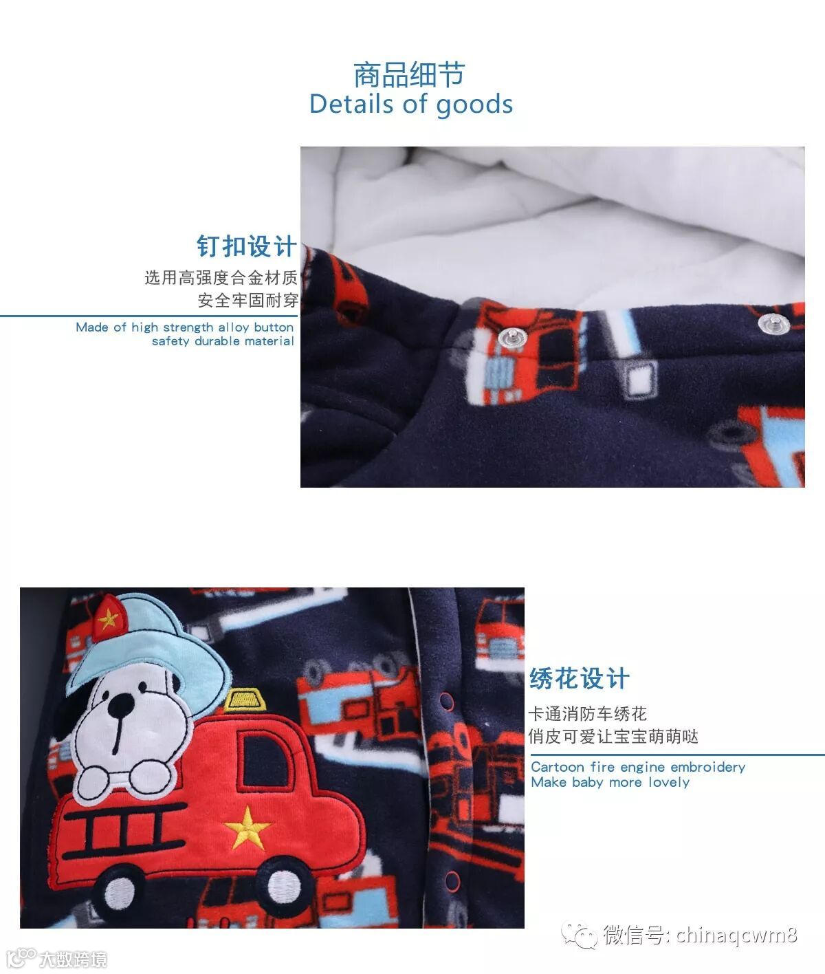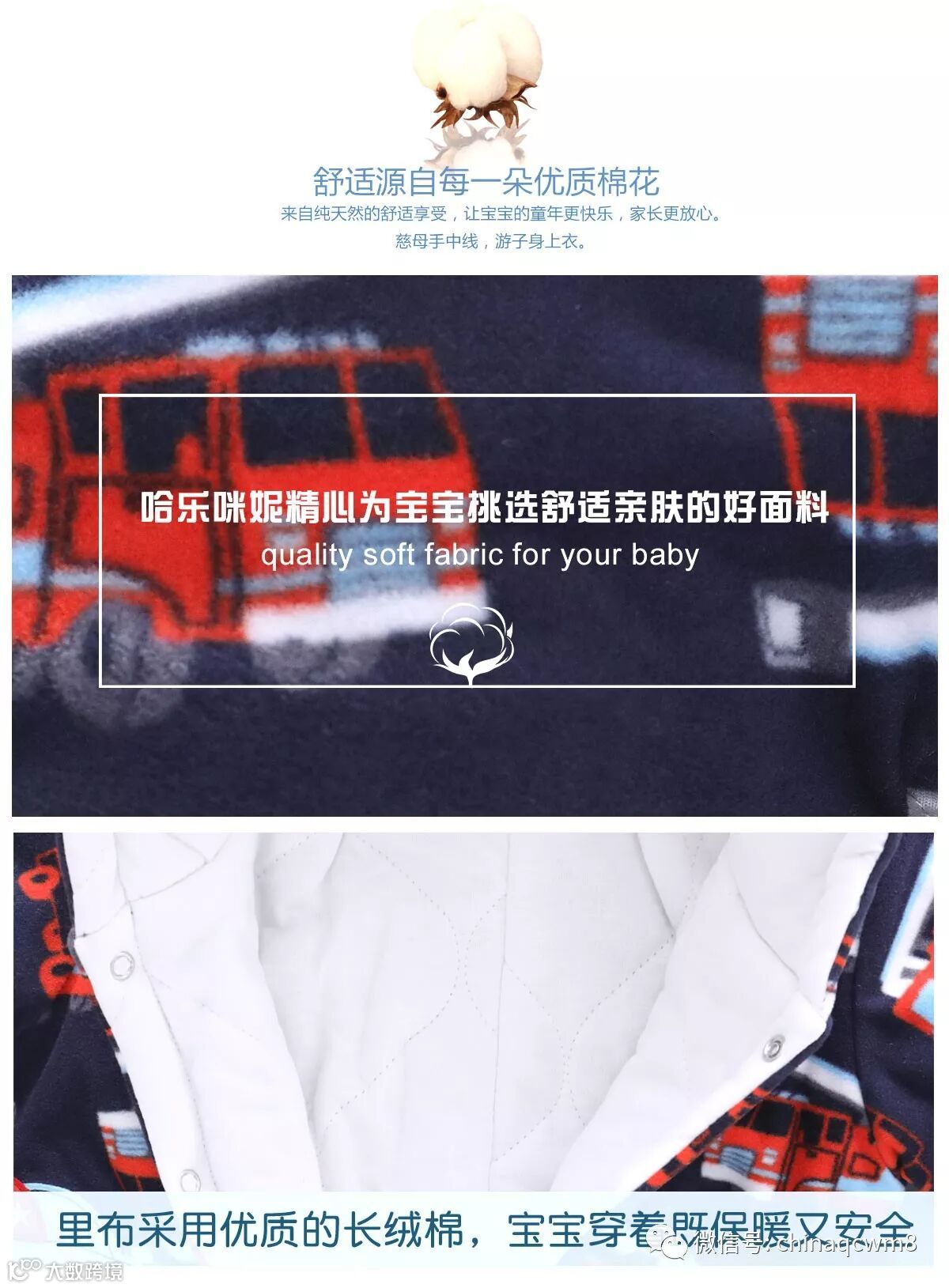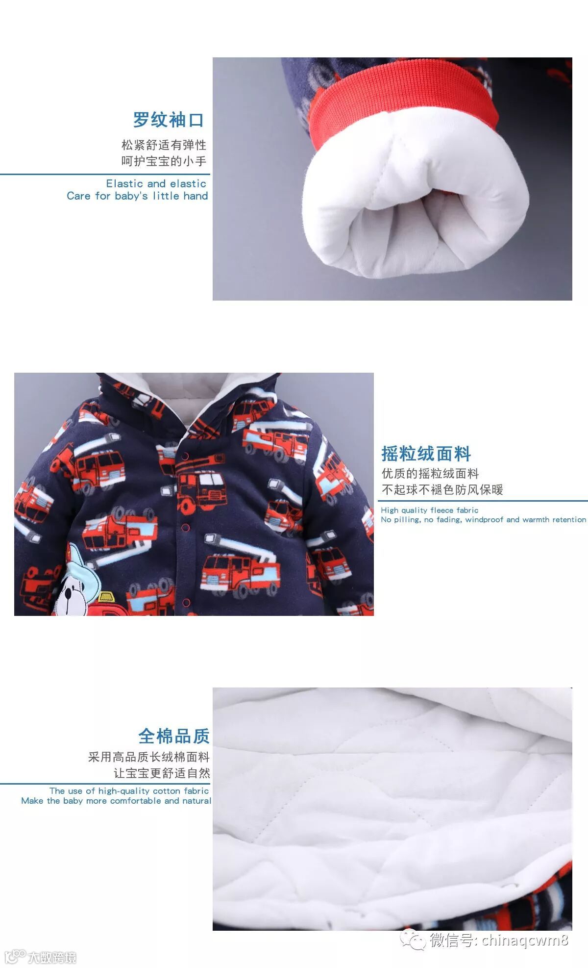 摇粒绒面料+纯棉里布。