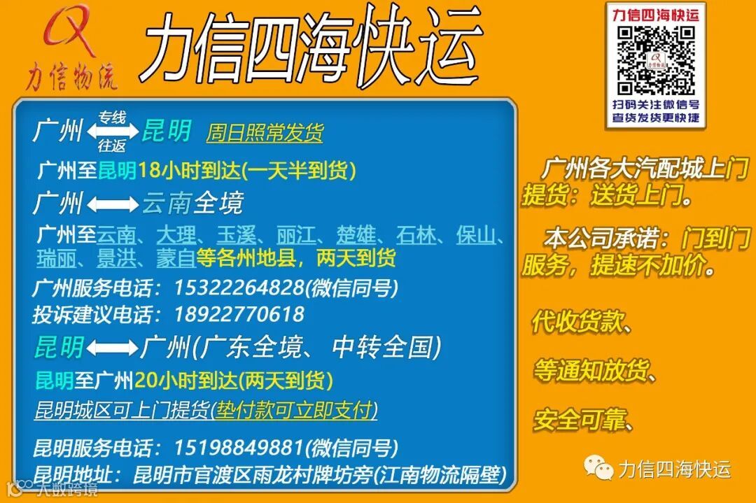 公司发展线路:广州→昆明、乌鲁木齐、宁波、义乌、温州、台州及直发全国各地
