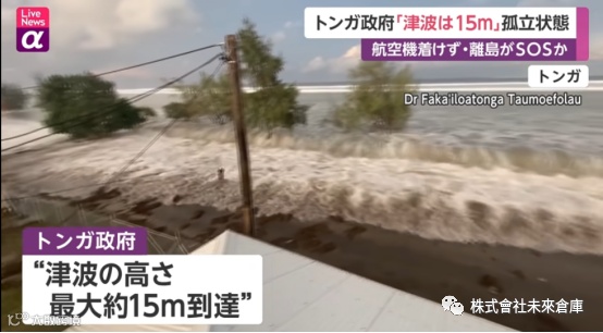 另一方面,在汤加附近的密克罗尼西亚群岛,发生了 10 至 30 厘米的海啸。 (截至21日,有资料显示在汤加岛上当地15米)