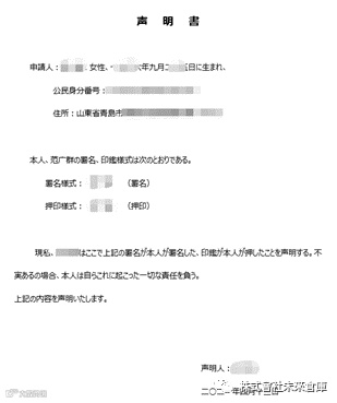 3.要求声明书中包含与户口本上一致的地址。
