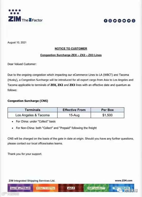 以星船公司近日发布通知,8.14号24点后还柜的需要加收USD1500的目的港拥堵费。