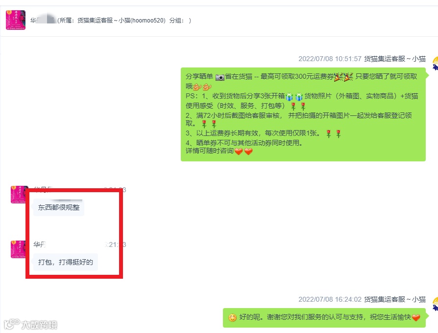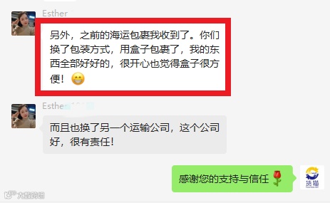 ⭐包裹遇到突发事件、扣件、丢货、破损等问题,及时的回复,快速的处理。