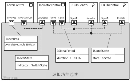 虚拟功能总线是对AUTOSAR提供的所有通信机制的一种抽象,是所有软件组件进行交互的桥梁。软件组件之间的通讯细节通过虚拟功能总线被抽象出来,软件组件通过AUTOSAR定义的接口对通讯进行描述,即可最大程度地独立于具体的通讯机制,实现与其他软件组件和硬件的交互。