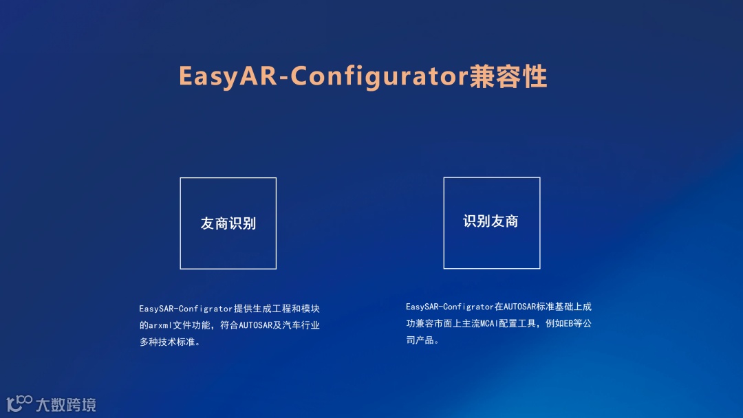 ● 友商识别:EasySAR-Configrator提供生成工程和模块的arxml文件功能,符合AUTOSAR及汽车行业多种技术标准。