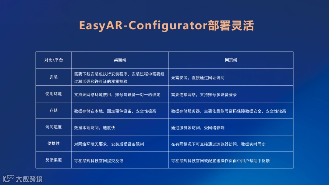 为适应更多开发部署环境,EasySAR-Configurator支持桌面端和网页端两种安装方式。桌面端数据存储在本地,无需通过服务器访问;数据本机处理,加载速度更快更安全。网页端无需下载及安装,仅需打开网页,随时随地想用即用。
