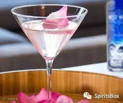 Chill a Martini glass with ice and a splash of Rose Water.