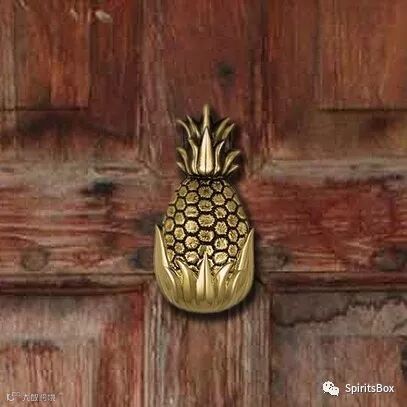 第二段传说是当时在美洲殖民地,船长们从加勒比海航行归来后,会用长矛在家里大门上叉上一只菠萝,表明他们已经平安归来并且愿意与好友和邻居分享他们的故事和财宝。与邻里重新加强联系,与宾客分享自己最珍贵的东西,这就是热情好客的精髓。随着这一传统的不断延续,殖民地的旅馆主们也开始在门环和附近的路牌上刻上菠萝的形状,对到访的宾客表示欢迎。