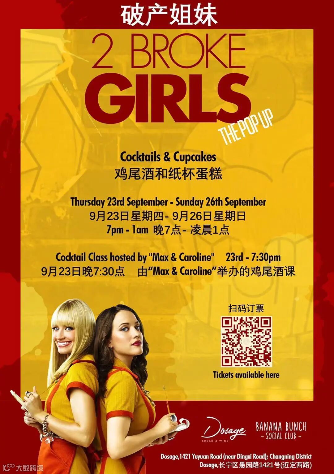 仅用一个周末,Banana Bunch S.C. x 洛悦庄园就把Dosage(愚园路店)变成一个破产姐妹主题的快闪酒吧,将在9月23日(星期四)至26日(星期日)营业。